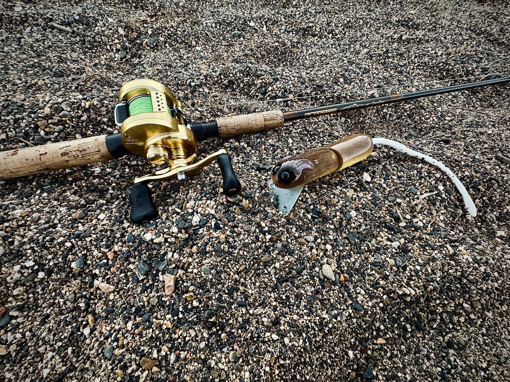 トッパーと言われるカテゴリーとはまた違った世界でアメモンロッドにローギアで岸からブン投げてデカいバスを狙うスタイル
