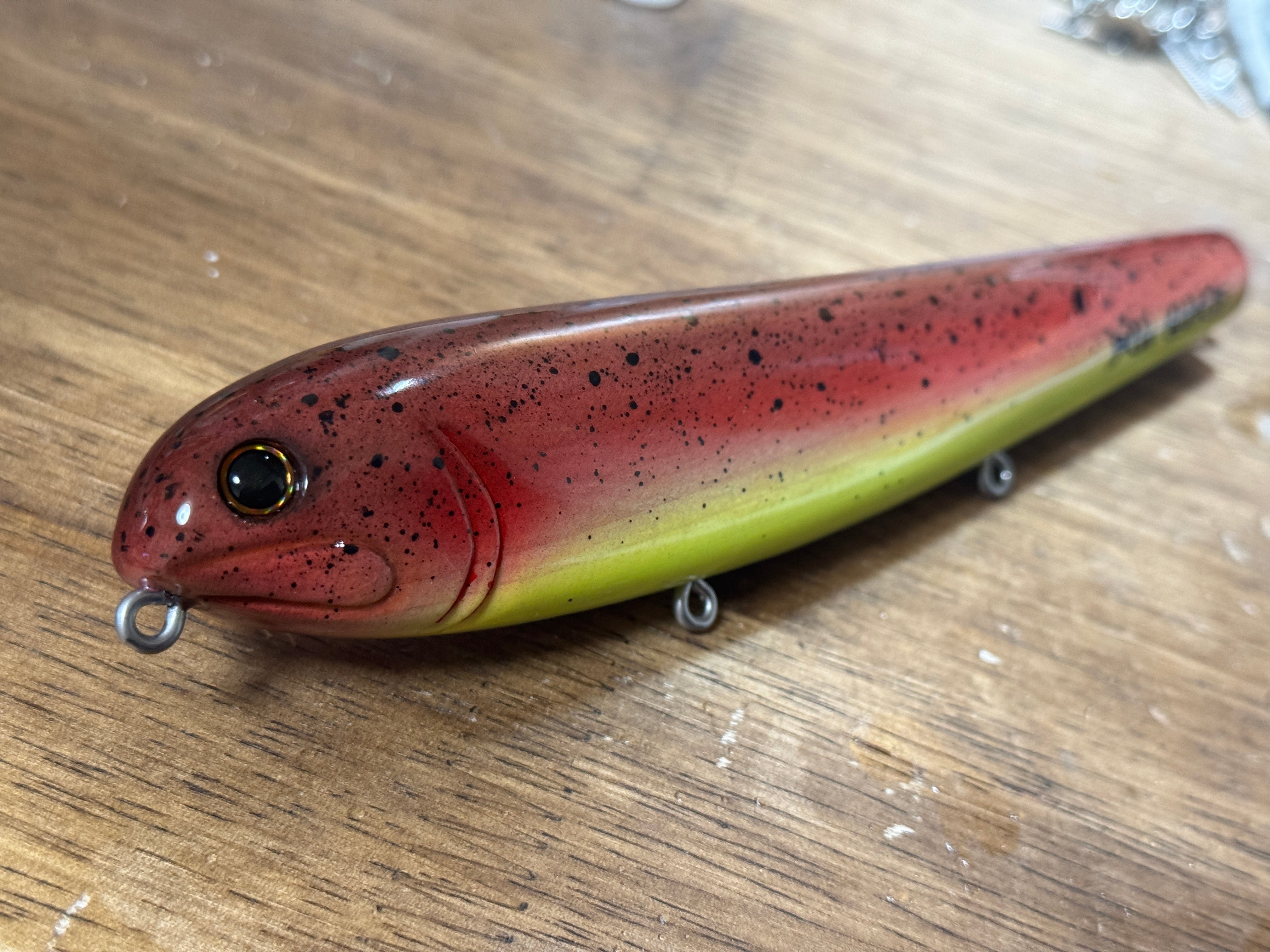 そこで近年のリールのハイギア化によりリーリング操作でアクションを付けれる様に設計、製作を行いようやく完成しました。